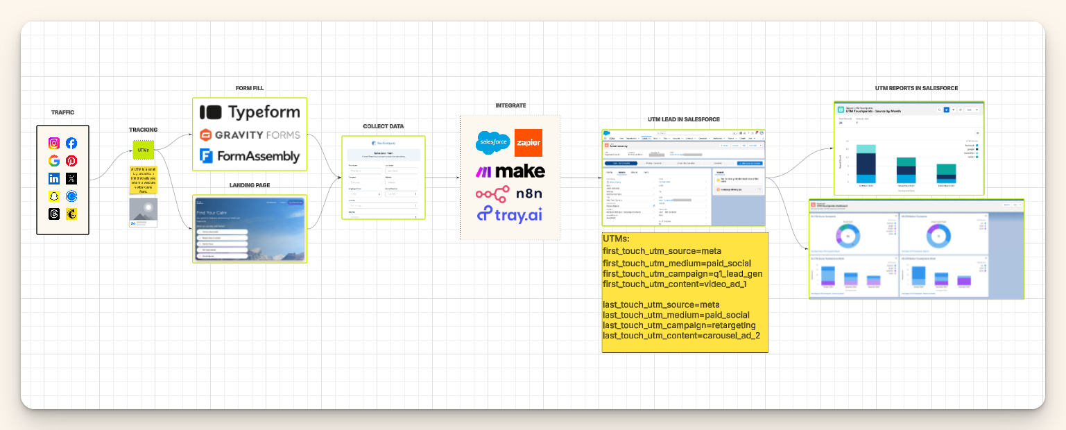 Once UTMs are consistently captured, you can build a single source of truth inside Salesforce.